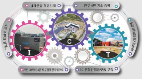 4C문화산업플랫폼 조성은 2026년까지 260억원(도 104억, 군 156억원)을 들여 송산리 16,556㎡의 부지에 지하 1층, 지상 4층 연면적 6,000㎡ 규모의 복합문화예술회관을 건립하는 사업이다.