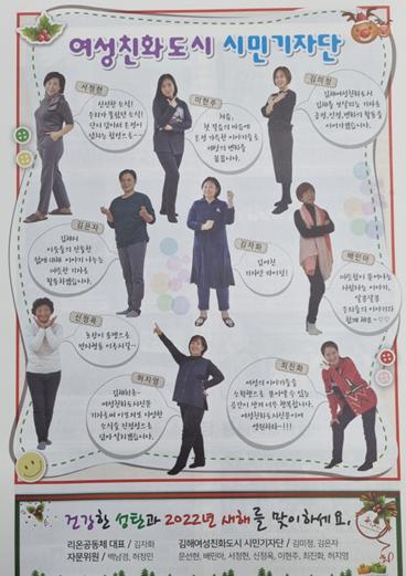 여성친화도시 신문은 리온공동체에서 2021년 김해시 양성평등기금을 지원받아 여성친화도시 시민기자단 양성과정을 열어 배출한 수료생 10명의 실습판이다.