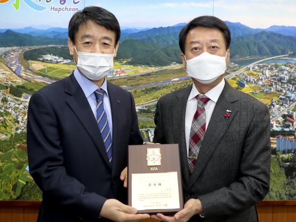 대한축구협회는 김상석 경남축구협회장을 통해 지난 4일 합천군청에서 문준희 합천군수에게 KFA AWARDS 감사패를 전달했다.