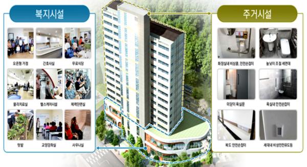 고령자복지주택은 만65세 이상 어르신들의 건강과 생활환경을 고려해 무장애(barrier free) 설계가 적용된 맞춤형 주택으로 주거지 내에서 복지서비스를 이용할 수 있도록 주거와 복지서비스 시설을 함께 제공하는 공공임대주택이다.