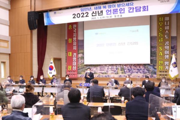 경주시가 임인년 새해를 맞아 주낙영 시장과 김호진 부시장, 국·소·본부장 등 간부 공무원이 참석한 가운데 5일 오전 ‘신년 언론인 간담회’를 개최했다.