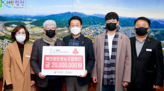 해인양돈영농조합법인은 5일 합천군에 이웃돕기 성금 2,000만원을 기탁했다.