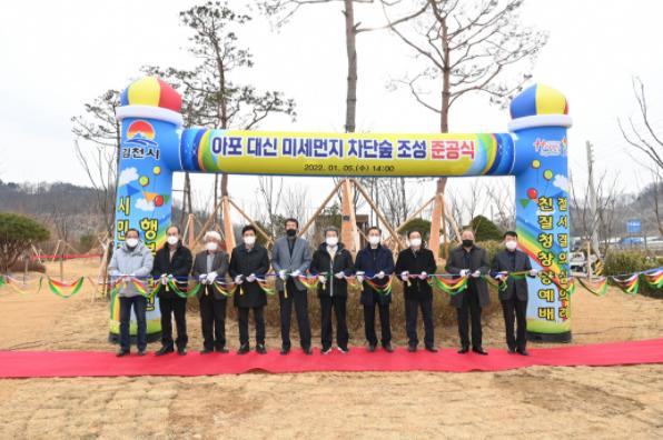 김천시는 지난 1월 5일 오후 2시 아포읍 대신리 1131-4번지 일원에서 ‘아포 대신 미세먼지 차단숲 조성사업’준공식을 가졌다.