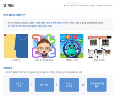 앱 해설프로그램에 참여한 교사는 “학생들에게 제공되는 유용한 무료 앱을 새롭게 알게 되었고 동영상, 자막, 오디오뿐만 아니라 수어통역영상을 통해 장애학생들의 웹접근성이 높아졌다. 이는 새로운 디지털 콘텐츠를 더 쉽고 친근하게 접근할 수 있는 계기가 될 수 있다.” 라고 전했다.