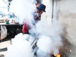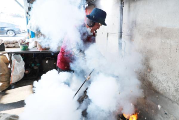 설 명절이 지났지만 시장 한켠에는 그래도 어르신들이 빼곡이 앉아 있는 가운데주인집 아저씨는 “뻥이요”하는 소리 대신 요즘에는 호루라기로 사람들에게 알려준다.