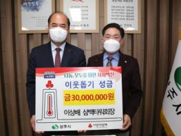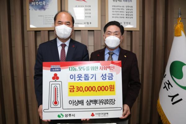 삼백타워·칸나에스엔에스는 2022년 임인년 새해를 맞이하며 1월 5일 상주시 관내 저소득 취약계층을 위한 이웃돕기 성금 3,000만원을 기탁하며 ‘희망2022 나눔캠페인’의 사랑의 온도를 높였다.