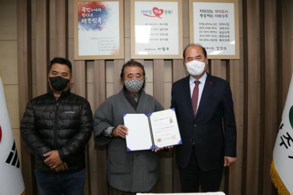 상주시는 1월 5일 지난해 12월 27일 경상북도 무형문화재 제25-다호 상주옹기장 보유자로 인정된 정대희氏에게 인정서를 전달했다.