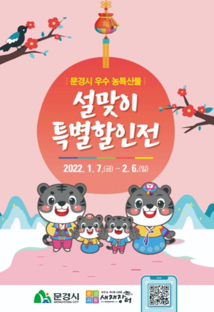 문경시는 기운찬 흑 호랑이해 임인년을 맞아 1월 7일부터 2월 6일까지 약 한 달 동안 '설맞이 농특산물 특별할인행사'를 진행한다.