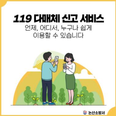 논산소방서는 각종 재난 발생 시 다양한 방법(문자, 앱, 영상통화)으로 신고할 수 있는 ‘119다매체신고서비스’를 연중 운영하고 있다고 밝혔다.