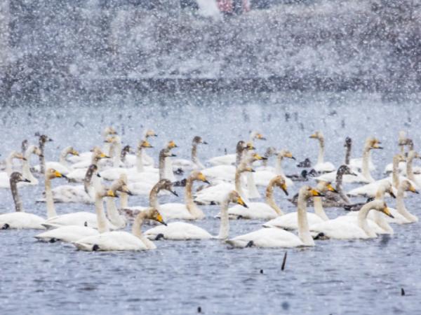 지산샛강에서 서식하는 철새 중에서 다수를 차지하는 큰고니(백조, Swan)는 기러기목 오리과에 속한 새이며, 온몸이 순백색이어서 백조(白鳥)로 불리기도 한다. 어원은 하도 고와서 고운사람(고은이-고니) 의미가 있으며, 서양 덴마크 동화 “안데르센 미운오리 새끼”와 러시아 발레“차이코프스키 백조의 호수”로 우리에게 매우 친숙한 철새이다.