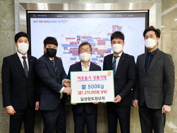 밀양시는 밀양향토청년회에서 6일 관내 저소득 소외계층을 위해 쌀 500kg(환가액 127만 원)를 시에 기탁했다고 전했다.