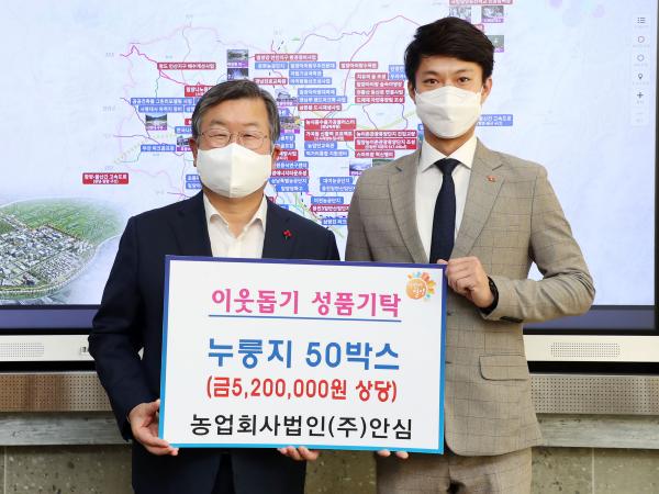 밀양시는 농업회사법인 ㈜안심에서 6일 관내 저소득 소외계층을 위해 누룽지 50박스(환가액 520만 원)를 시에 기탁했다고 전했다.