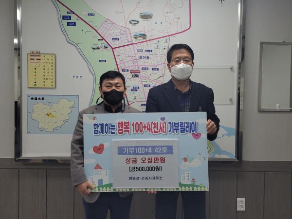 밀양시 소재 양중섭건축사사무소는 지난 5일 내이동행정복지센터를 방문해 성금 50만 원을 전달했다.