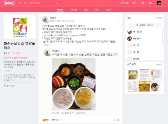 밴드 등 비대면 플랫폼을 활용해 굿바이 코로나 손 씻기 챌린지, 아침밥 먹기 챌린지, 영양 퀴즈풀이 등 개인별 맞춤 영양 상담과 교육을 진행하고 월 2회 보충식품을 제공해 올바른 식생활 관리 능력향상과 군민 건강증진에 앞장섰다.