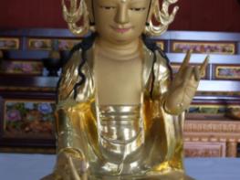 '창원 정법사 목조관음보살좌상'은 양산 통도사에 있던 것을 정법사 개창 후 이운한 것으로 가늘고 긴 상반신에 넓은 하반신의 신체 비례, 큼직한 코에 입꼬리가 올라간 큰 입술과 밝은 표정, 가늘고 길쭉한 손, 발끝을 덮어 아래로 흘러내리는 둥근 옷자락 등의 형태를 통해 17세기 후반에 조성된 것으로 추정되며 조선 후기 불상의 특징을 따르면서도 개성 있는 무염계(無染系) 조각승의 표현기법을 잘 보여주고 있다.