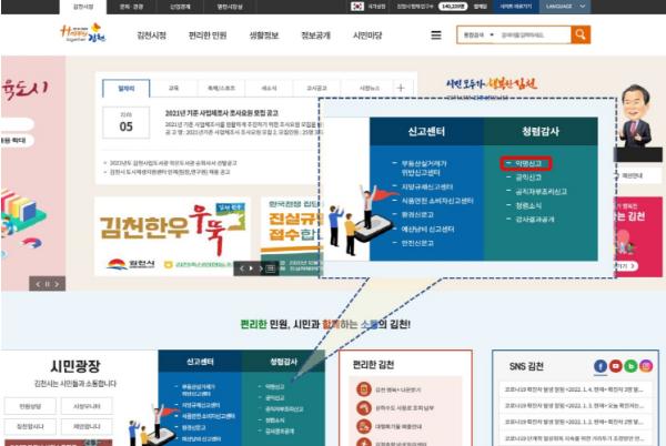 김천시는 지난해에 이어 올해도 공직자의 부정부패 행위 등을 익명으로 신고할 수 있는 익명제보시스템(청렴 파수꾼)을 운영한다.