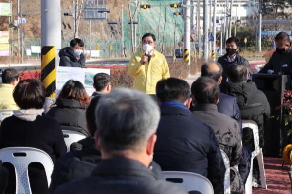 덕동공영차고지~덕동삼거리간 도로개설공사는 사업비 46억원이 투입돼, 기존 2차선 도로를 길이 295m 폭 28m의 4차선으로 확장 개설하는 사업이다. 시와 주민들간 간담회 자리에서 건의돼 보상 등 행정절차를 거쳐 2021년 12월 완공됐다.