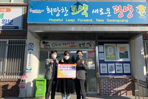 김정희 ㈜케이투에프엠 대표는 1월 6일 금호동 주민센터에서 (재)광양시사랑나눔복지재단에 100만 원을 지정 기탁했다.
