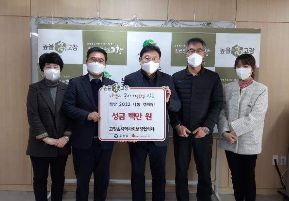 고창군 고창읍 지역사회보장협의체가 지난 6일 고창읍 행정복지센터를 방문해 관내 취약계층을 위한 성금 100만원을 기탁했다.
