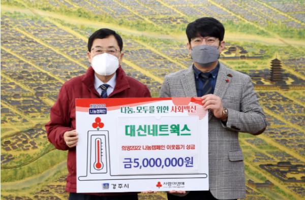 대신네트웍스㈜ 경주에서 6일 경주시청을 방문해 희망2022 나눔캠페인 성금 5백만 원을 기탁했다.