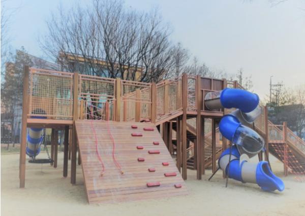 시는 당초 놀이터 중앙에 있던 나무를 최대한 보존한 가운데 나무 사이를 공중으로 오가며 놀 수 있는 대형 트리하우스 형태의 모험놀이대를 설치했으며, 여러 연령대 아이들이 동시에 이용할 수 있도록 난이도를 구분한 미끄럼틀을 배치했다. 또 암벽등반, 바구니 그네, 짚라인 등 아이들이 모험을 즐길 수 있는 다양한 놀이기구를 서로 연결해 놀이성을 극대화했다.