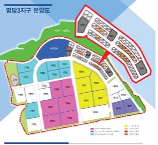 명당3지구는 현재 산업용지 34필지 중 13필지(38.2%), 지원용지 39필지 중 29필지(69.2%), 상업용지 2필지(100%)가 분양되어 전체 분양률은 필지수 대비 53.8%(매각액 대비 33.3%)의 성과를 나타내고 있다.