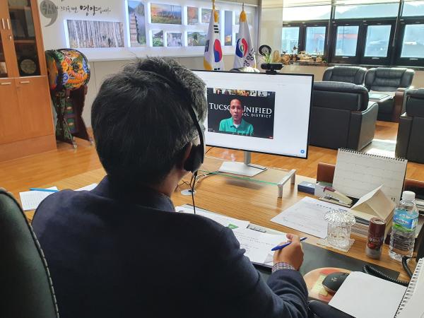 영양군은 미국 애리조나 투산시 간 국제교류협약에 따라 코로나19 상황에 적합한 온라인 화상 수업(English Language evelopment)을 1월 7일부터 1월 28일 겨울방학 기간 동안 운영한다.