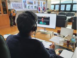주목환 자치행정과장은“코로나19 장기화로 미국방문을 통한 국제교류 기회가 올해에도 시행되지 못하여 아쉬움이 클 학부모님과 학생들에게 비대면 쌍방향 온라인 학습이 하나의 대안방안이 되기를 기대한다.”고 말했다.