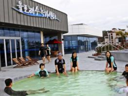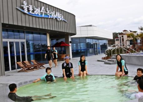 특히, 야외에서 노천욕으로 일출과 일몰을 즐길 수 있고 지하 120m 암반층에서 끌어올린 해수에 녹차를 우려 놓아 코로나19로 지친 몸을 달랠 수 있는 전국 유일의 녹차해수탕이다. 현재 야외 노천탕은 코로나19감염 및 확산방지를 위해 2월 28일까지 휴장한다.