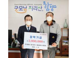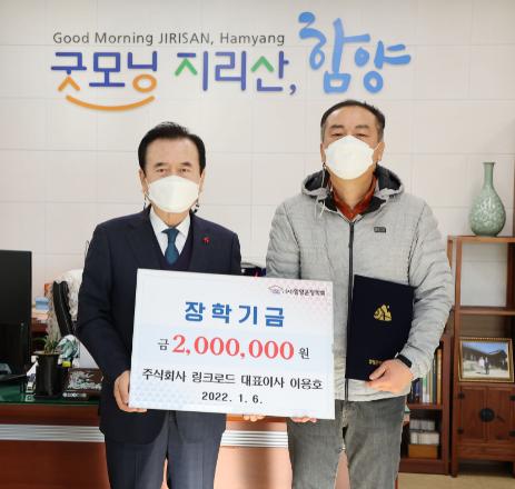 지난 6일 함양군에 위치한 주식회사 링크로드 이용호 대표가 지역의 인재들을 위한 장학금 200만원을 전달하였다.