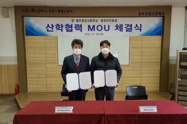 충주공업고등학교는 충주공업고등학교 회의실에서 2022년 1월 5일, 1월 6일 양일간 각각 충주드론아카데미, 중원무인항공과 소형무인기(이하 드론) 교육 발전을 위한 산·학 협력 협약을 체결하였다.
