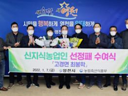 영천시 고경면의 고도리 와이너리 최봉학 대표가 농림축산식품부에서 주관하는 신지식농업인에 선정되어 7일 영천시청에서 선정패 수여식을 진행했다.
