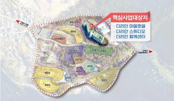 62억원의 사업비가 투입되는 다리안 D-Camp 플랫폼 조성사업은 다리안관광지 내 방치됐던 소백산 유스호스텔 건물을 활용해 마을호텔, 스튜디오, 체험프로그램 등이 총 망라된 국내 제일의 체류형 관광시설로 탈바꿈하는 사업이다.