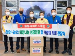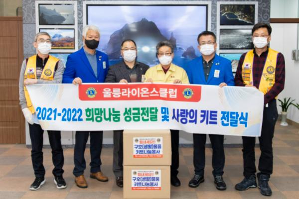 지난 1월 6일 국제라이온스클럽356-E 경북지구 울릉라이온스클럽은 불우이웃 돕기 성금 100만원과 독도라이온스클럽과 함께 제작한 사랑의 키트 36박스를 기탁하여 희망 나눔 온도를 높였다.