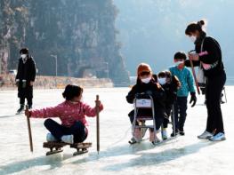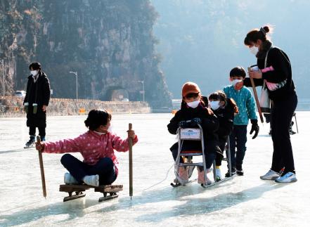 약 3만㎡의 탁 트인 천연 얼음 위로 썰매가 미끄러지며 아이들의 웃음소리가 이어진다. 어른들은 넘어질 듯 썰매를 끌면서도 카메라 셔터 누르는 타이밍을 놓치지 않는다.