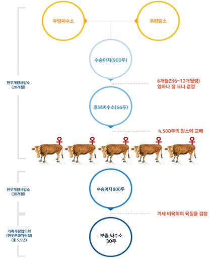 보증씨수소는 능력검정(당대검정, 후대검정)을 통해 유전적으로 우수한 씨수소를 선발하고 선발한 씨수소로부터 인공수정용 정액을 생산·공급해 한우를 개량함으로써 축산농가의 소득증대에 기여한다.