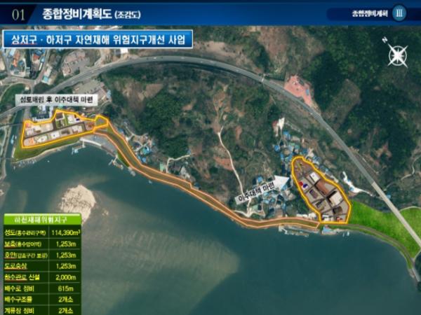 이에 따라 군은 상·하저구에 대해 11만 4390㎡의 홍수관리구역 성토 및 이주대책 수립, 연장 1.253㎞의 보축 및 도로 숭상, 계류장 2개소 조성 등을 추진한다.