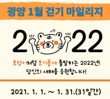 시민의 적극적인 참여와 호응으로 올해도 계속되는 새해맞이 걷기 챌린지는 1월 31일까지 목표걸음 8만 보, 16만 보, 20만 보 달성 시마다 보상이 주어지는 마일리지 적립방식으로, 선착순 700여 명에게 모바일 문화상품권을 단계별 지급할 계획이다.