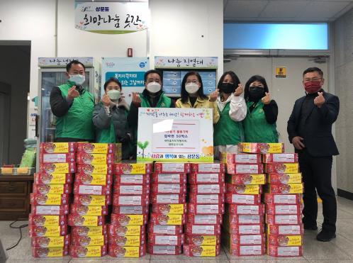 상문동 새마을지도자협의회와 새마을 부녀회에서 지난 7일 어려운 이웃을 위해 사용해달라며 상문동주민센터에 컵라면 50박스를 기탁했다.