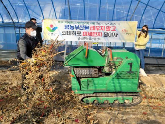 순창군이 영농부산물 재활용으로 미세먼지 없는 깨끗한 농촌만들기 실천에 팔을 걷어부쳤다.