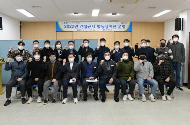 고령군은 1월 5일 14:00 군청종합상황실에서 건설과장을 단장으로, 시설공사 관련 공무원 38명으로 구성된“2022년 건설공사 합동설계단”발대식을 가졌다.