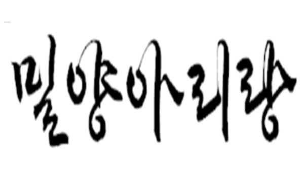 '밀양아리랑체'는 타이틀용 서체로 민요의 전통적인 리듬감과 구슬픈 듯 경쾌한 민요가락의 특징을 형상화한 독창성과 화려한 붓글씨타입이다.