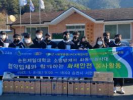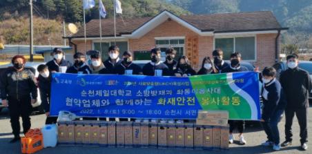 순천제일대학교 소방방재과 ‘화동이 봉사대’는 지난 8일 순천시 서면 신촌마을에 거주하는 화재취약가구 43세대에 화재감지기 및 소화기를 설치하는 봉사활동을 펼쳤다.