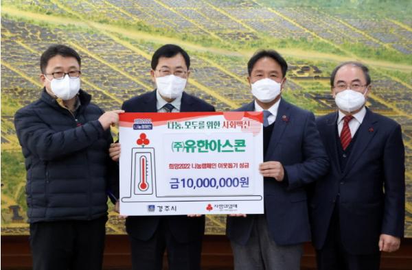 강동면 소재 ㈜유한아스콘은 아스팔트 콘크리트 제조기업으로서 새해를 맞아 주위 어려운 이웃들을 생각하는 따뜻한 마음으로 나눔캠페인 성금 모금에 동참했다.