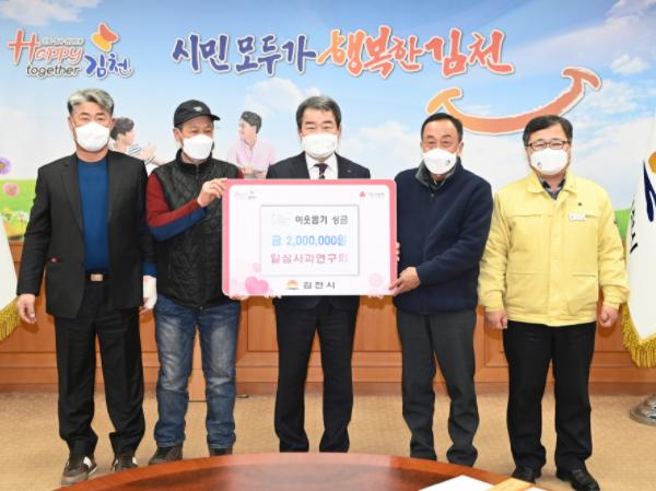 김천시 사과재배 선도농가 모임인 일심사과연구회는 지난 7일 김천시청을 방문해 지역의 어려운 이웃과 희망을 나누고자 불우이웃돕기 성금 200만원을 기탁했다.