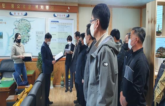 영암군 시종면은 지난 1월 7일 임인년에 마을과 면 행정을 위해 봉사할 마을 이장 임명식을 개최했다. 코로나19 상황을 고려해 신임 이장 11명에게만 임명장 수여 및 직원소개와 직무교육도 시행했다.