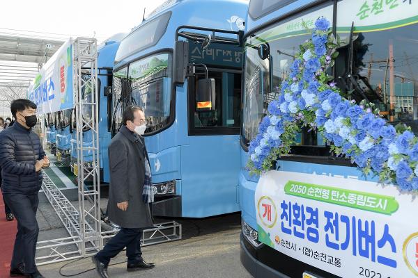 순천시는 정부의 그린뉴딜, 2050탄소중립 정책에 발맞춰 1월 10일 ‘친환경 전기 시내버스’운행을 개시했다.