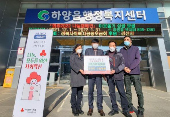 경산시 하양읍 도리리 주민 일동은 7일 하양읍행정복지센터를 방문하여 적십자회비 100만 원과 이웃돕기 성금 30만 원을 기탁했다.