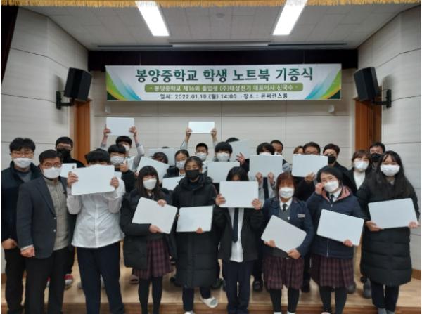 등운 장학회 신국수 회장은 봉양중학교 16회 졸업생으로 학교에 남다른 애정을 가지고 봉양중학교 후배들에게 수년간 장학금을 지급하고 해외 체험 학습 기회를 제공해 왔다. 올해는 코로나19로 해외 체험 학습이 어려워져 전교생에게 노트북을 지원하기로 한 것이다.