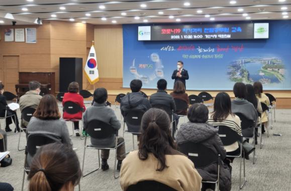 경산시는 10일 시청 대회의실에서 최근 코로나19 백신 접종 효과 감소와 오미크론 변이 국내 전파 급속 진행으로, 확진자 증가에 대비한 자가격리자 관리 체계 강화를 위해 자가격리 전담공무원을 대상으로 역량 강화 교육을 한다.